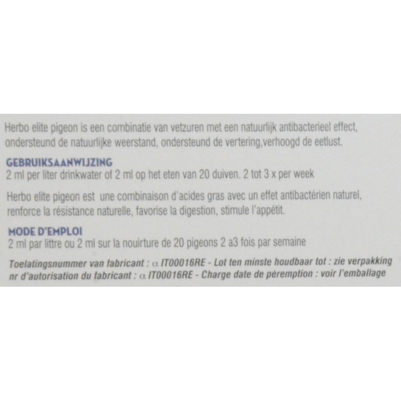 Herbo Elite Pigeon is een speciale combinatie van vetzuren met een natuurlijk antibacterieel effect.