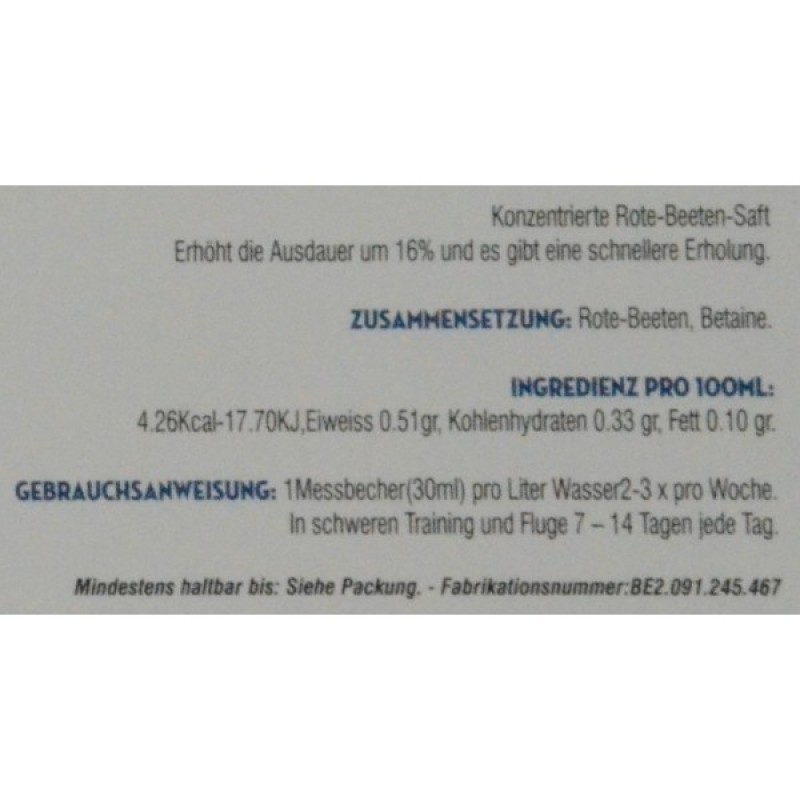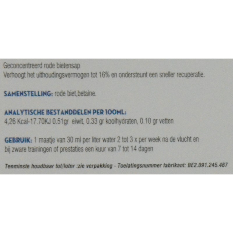 Daar het bietensap geconcentreerd is heb je maar 30ml per liter water nodig (met niet-geconcentreerd bietensap heb je 300ml per liter water nodig). HERBOBEETS verlaagt de bloeddruk waardoor het uithoudingsvermogen versterkt wordt.